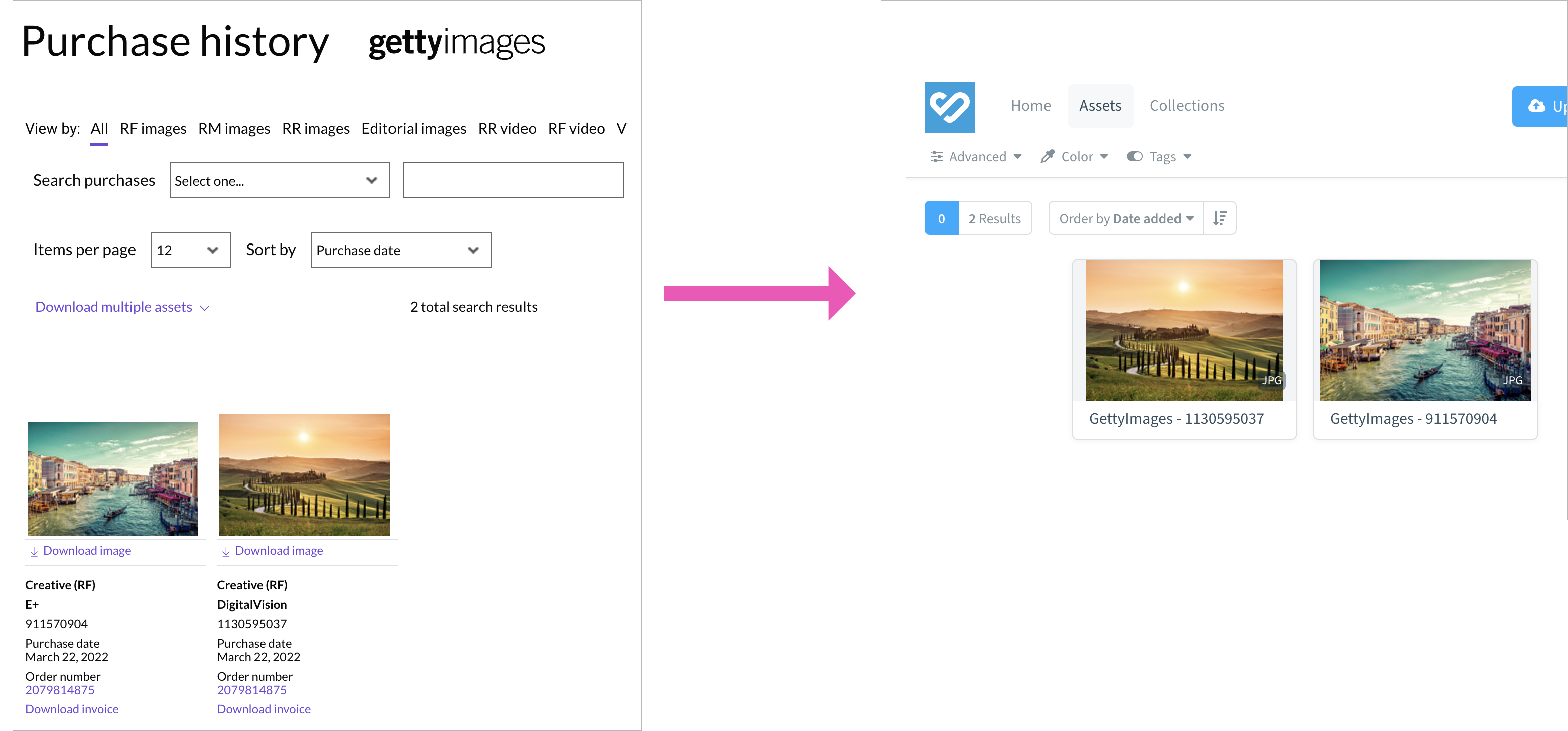 Once configured this workflow will automatically transfer your purchased Getty images to Bynder: