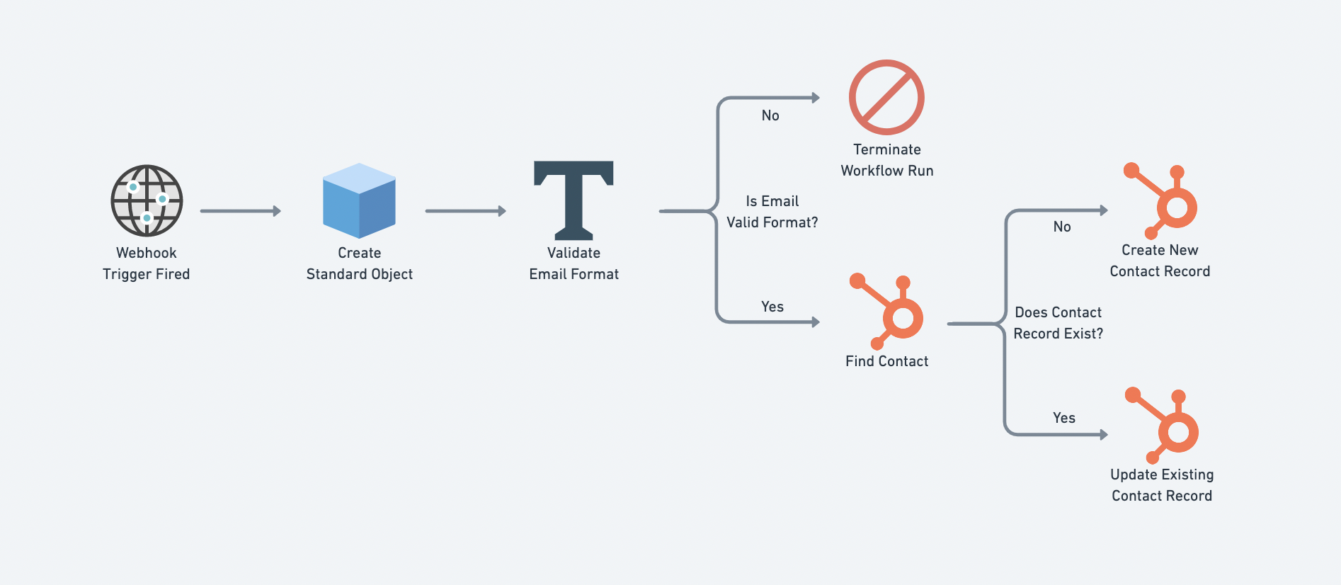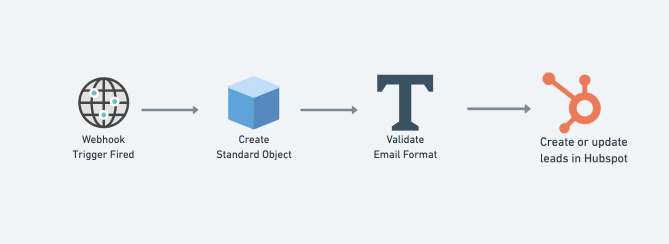 The purpose of this workflow is to capture leads from a Webhook and use these to create and update your contacts in HubSpot.