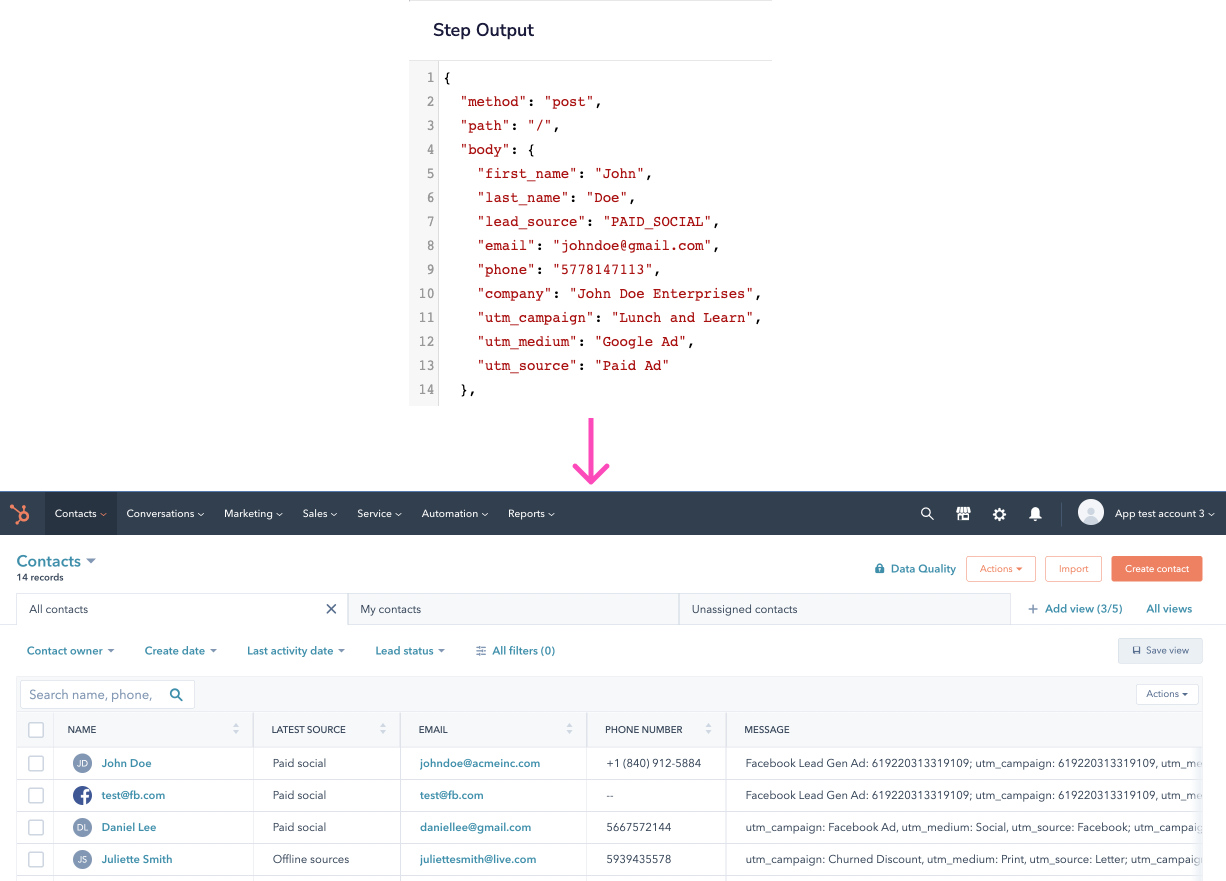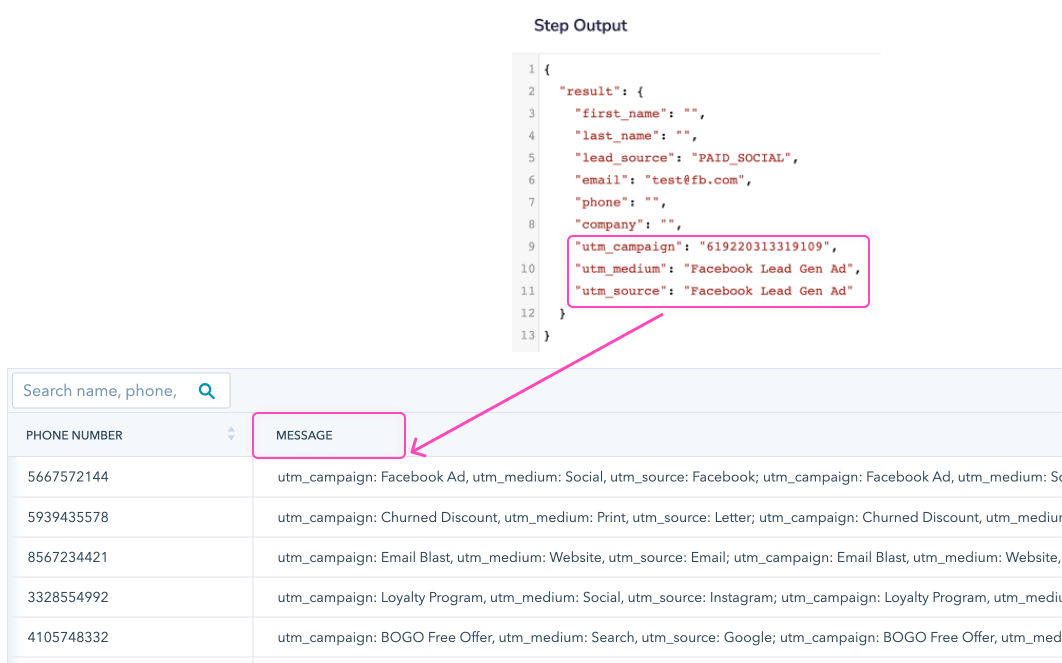 For simplicity this template adds the UTM information into the HubSpot 'message' field for each contact (rather than using HubSpot custom fields).